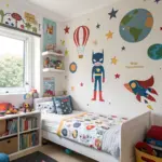 - Planetary Wall Graphics: Enhance walls with removable planetary graphics for an immersive space atmosphere in your child’s room.