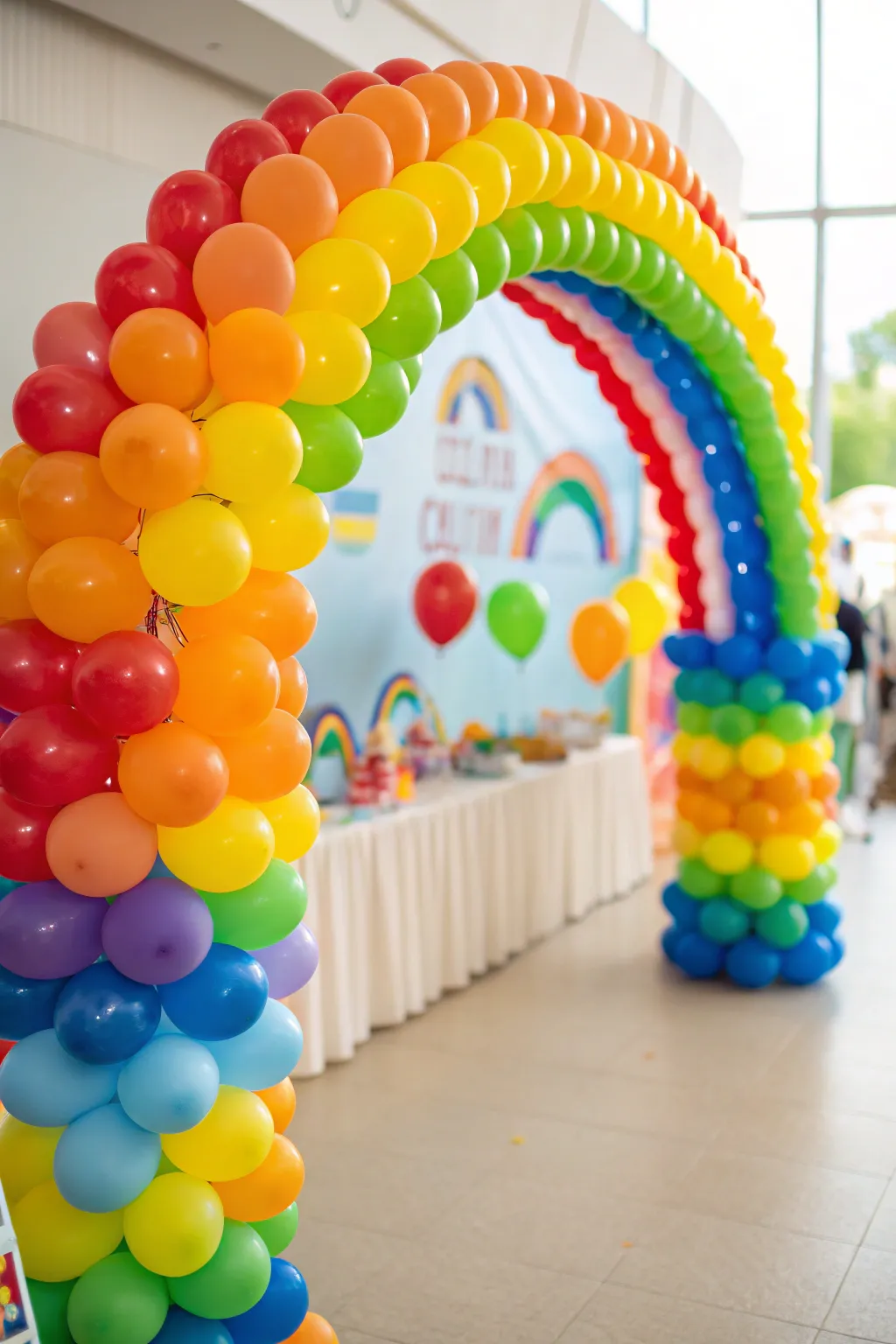Illuminate your arch through spheres in harmonizing hues. This playful notion is superb for celebrations and contributes a joyous, celebratory atmosphere.