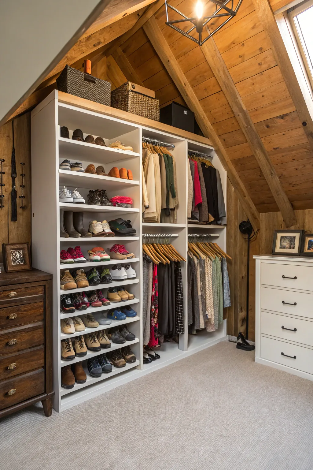 - Adaptable Shoe Platforms: Maximize your attic’s area by setting up adaptable shoe platforms for a stylish and organized display.