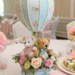 Make a floating airship centerpiece with a basket and helium balloons. It’s a charming approach to enhance your table decor, both literally and figuratively!
