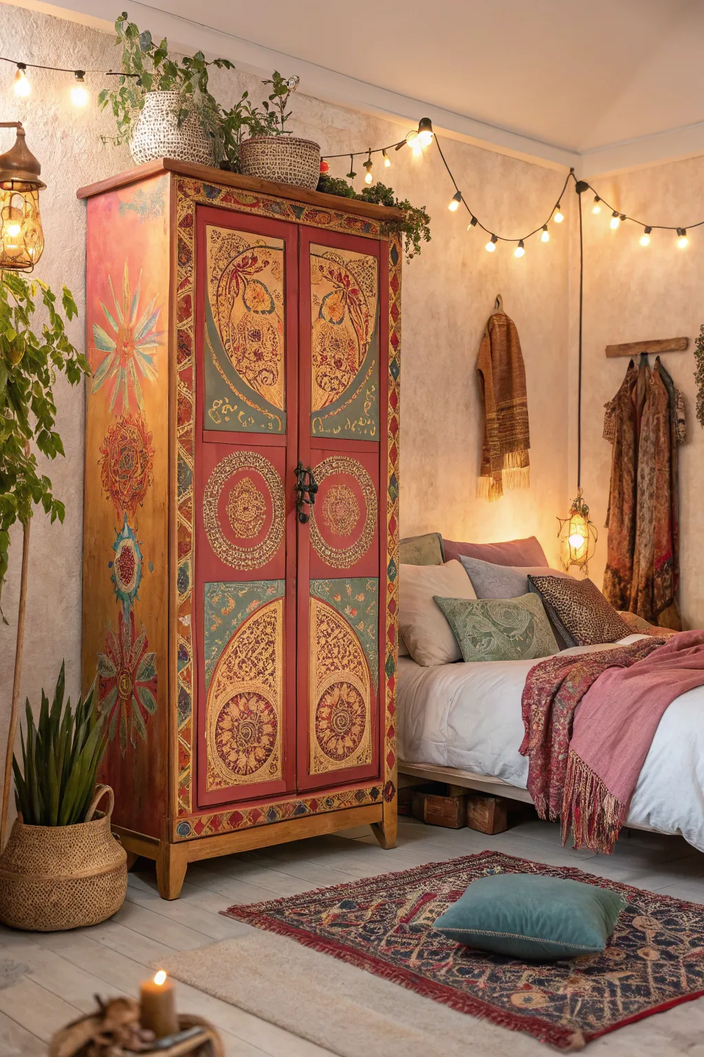 Infuse your bedroom with boho chic by painting your wardrobe in vibrant free-spirited colors. This style suits expressing a free-thinking and artistic vibe.