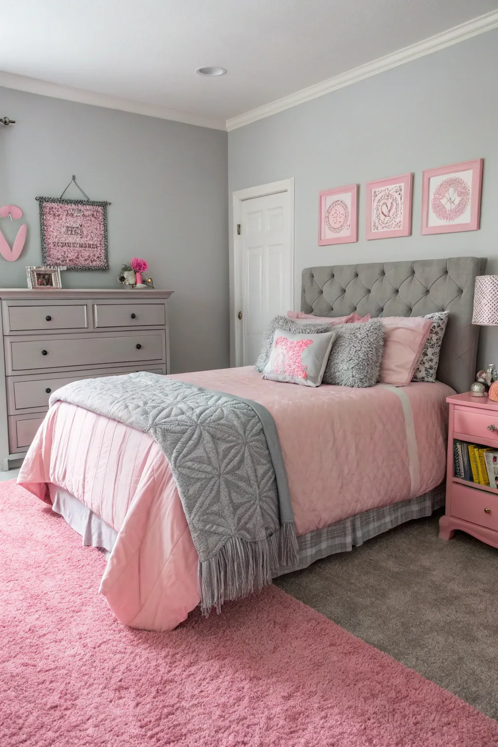 Blending rose with gray produces a harmonious and modern aesthetic. I’ve observed this duo works remarkably well in creating a tranquil and stylish setting.