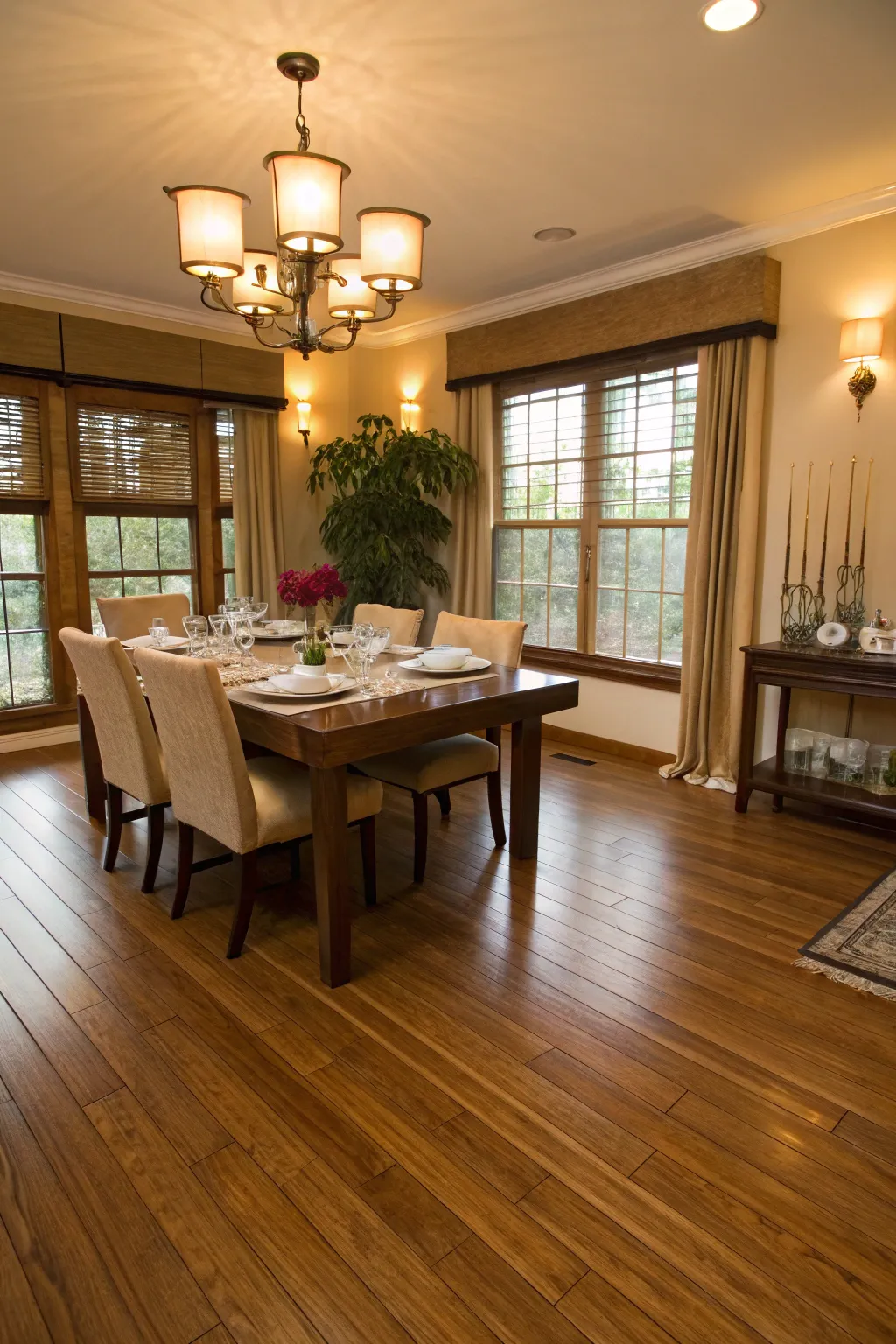 - Reed Flooring Strips: Elevate your space with sustainable reed flooring, uniting style and durability for your dining room.