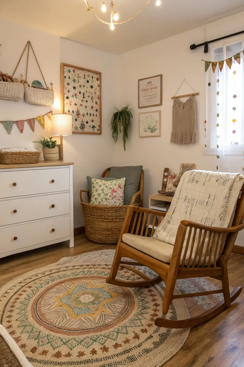 - Hand-Knitted Throw: Enhance comfort with a soft hand-knitted throw, adding cozy layers to your nursery decor.