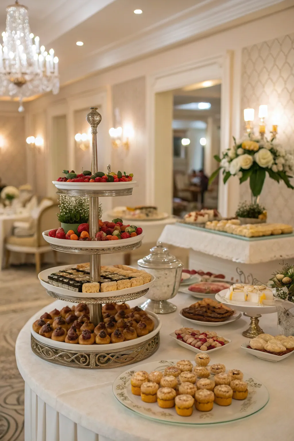 - Ornamental Dessert Pyramid: Showcase your sweets upon a vintage dessert tower, ideal for elegant tea gatherings.