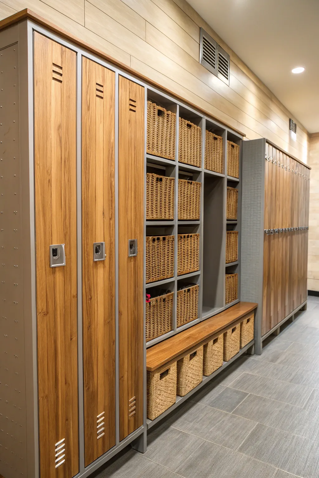 Unite diverse materials like wood, metal, and fiber for a textured, visually appealing aesthetic. This introduces depth and identity to your storage.