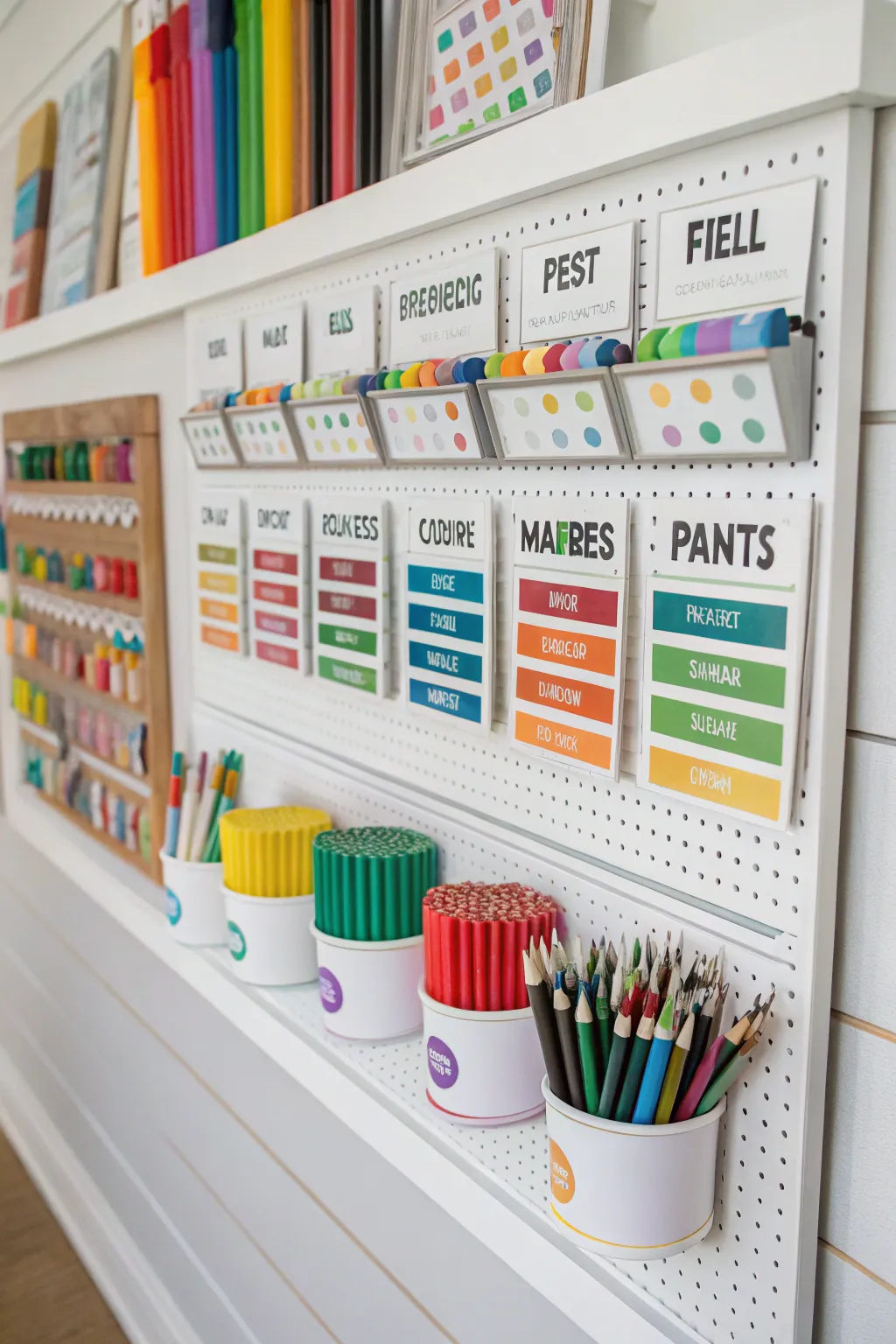 Maintain order using an arranged craft center, marking divisions for distinct materials. I believe this arrangement boosts both creativity and productivity.