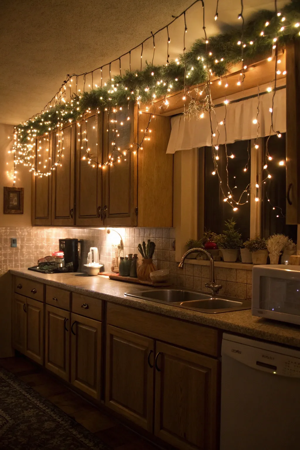 - Dainty String Lights: Illuminate your kitchen using fragile string lights to instantly conjure a cozy and enchanting atmosphere.