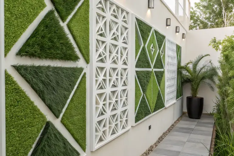 Simulated turf walls present an exceptional method to infuse the allure of the outdoors into indoor or outdoor environments. They cater perfectly to those of us who value verdant aesthetics without the demands of maintaining actual plants. Tranquil Bedroom Sanctuary A serene bedroom retreat elevated by a rich simulated turf wall. Cultivate a peaceful refuge in your bedroom with a greenery wall positioned behind the bed. It contributes an organic element that complements plush fabrics…