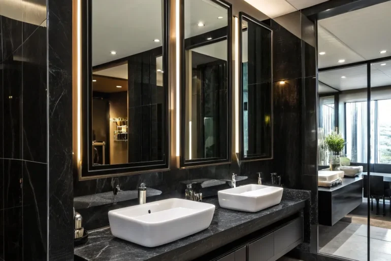Bathrooms in black possess a remarkable ability to transform regular spaces into captivating havens. Let’s explore some stylish and unique concepts to ignite inspiration for your upcoming bathroom transformation. Embracing Whimsical Motifs Through Black Geometric Schemes Geometric motifs inject a spirited dimension into a black bathroom. Employ black and white geometric squares to express a spirited and artistic ambiance. This methodology accentuates geometric patterns, thus enriching visual intrigue. Maybe worth checking out: Noir et Blanc…