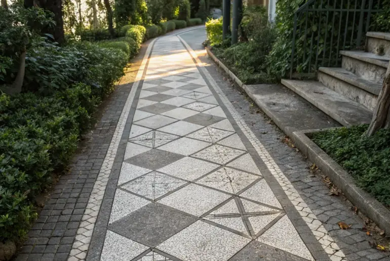 The entrance walkway is essentially your home’s opening statement. Let’s discover ways to transform this area into a welcoming experience. Combine Materials for Enhanced Texture A textured walkway combining stonework and small rocks for a distinctive design. Integrating different materials like stonework and small rocks introduces visual depth and texture to a walkway. I’ve learned that this material combination not only boosts the look but also improves resilience. These products might be useful: Ornamental Ground…