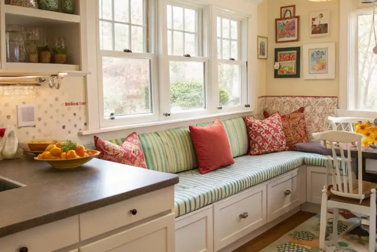 Turning your kitchen into a cozy and welcoming heart of the home can be achieved with the addition of built-in banquette seating, a superb option for those who value both beauty and practicality. Creative Flair Banquette seating featuring a creative flair for a personalized kitchen. Add a creative flair by including custom artwork or murals above your banquette. This personalizes the space and introduces a unique focal point. A few helpful options: Collection of Wall…