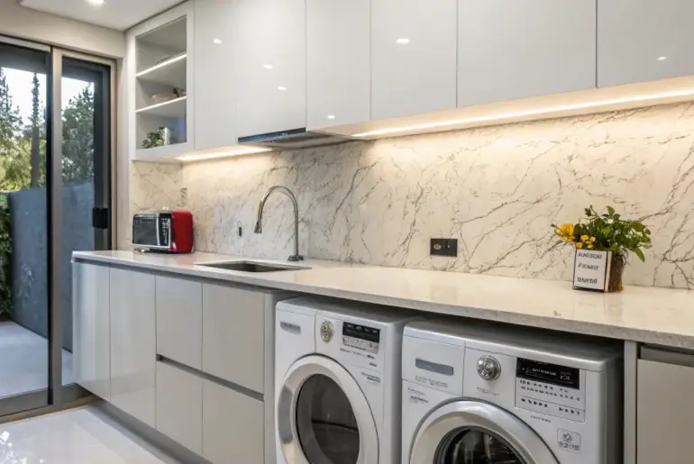 Imagine juggling laundry with ease while a delicious meal is cooking. Installing a washer and dryer in your kitchen can turn this vision into reality, simplifying multitasking. Neutral Color Palettes Neutral color schemes create a harmonious kitchen environment. Select neutral hues to ensure your appliances blend in effortlessly. This method promotes a serene and balanced atmosphere, a principle I often apply to create harmonious spaces. Explore these options: Subtle Washer and Dryer Wraps: Maintain your…