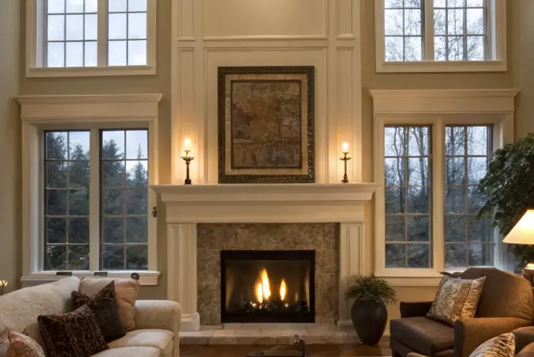 There’s an undeniable charm to having a fireplace nestled perfectly between two windows. This arrangement not only offers warmth but also beautifully frames outdoor scenery, establishing a welcoming and attractive centerpiece in your home. Earthy Wood Tones Wood accents bring a rustic charm to this airy and bright living space. Incorporate wood features into your fireplace design for a rustic charm that’s softened by natural light—a style I find perfect for creating a warm and…