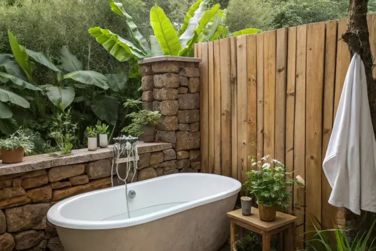 Envision yourself immersed in a soothingly warm bath, accompanied by the soft sounds of rustling leaves and cheerful birdsong. Here are some captivating inspirations to design your personalized nature-inspired outdoor bath sanctuary. Blooming Canopy Find peace in a garden hideaway with a floral backdrop. Integrate your bathtub into a lush garden adorned with vibrant blossoms. Being surrounded by the sights and fragrances of the garden is a sensory delight. Useful items to consider: Aurora Garden…