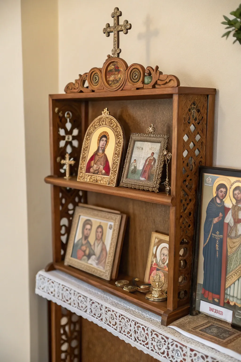 - Delicately Carved Wood Cross: Opt for a delicately carved cross to form a captivating centerpiece in your personal sanctuary.