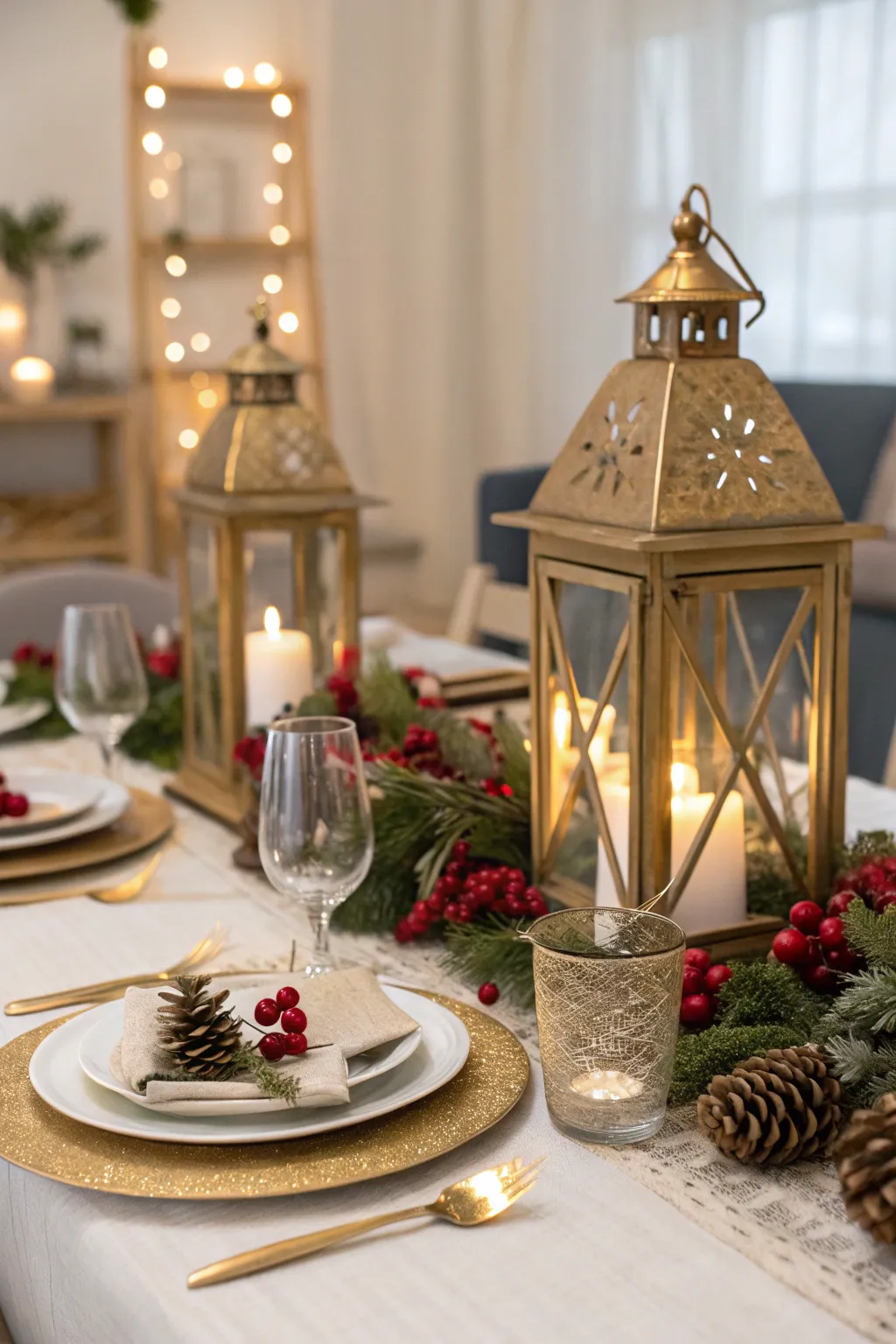 Incorporate gilded lanterns brimming with seasonal ornamentation for a versatile and celebratory centerpiece. I enjoy altering the contents with the seasons to maintain its novelty.