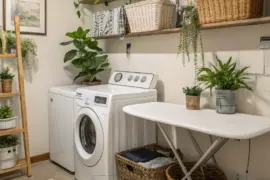 Bring in some character through decorative details like rugs and plants. These subtle additions make my laundry section feel welcoming and comfortable.