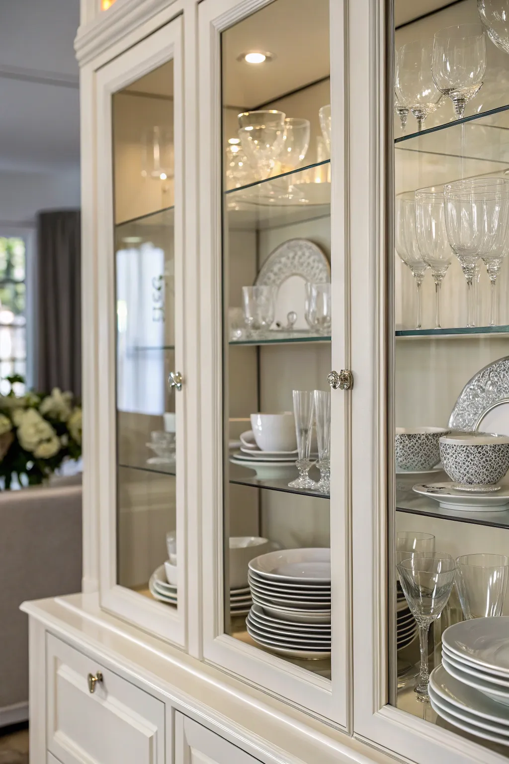 Flaunt your favorite pieces with see-through door cabinets.