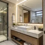 - Untreated-Edge Timber Plank for Worktop: Transform your washroom using a magnificent untreated-edge timber plank for organic warmth and style.