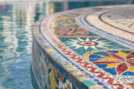 - Colorful Mosaic Tile Arrangement: Transfigure your pool deck with vibrant mosaic tiling, attaching artistic and eye-catching patterns.