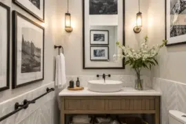 Place a few Celebratory Statuettes on your bathroom shelves for a playful element. My personal favorites are small reindeer or snowmen that bring a smile each time I see them.