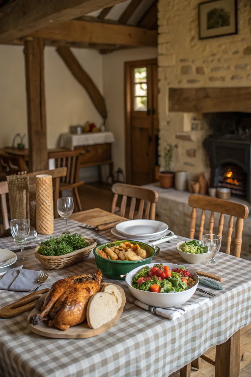Adopt rustic charm with a farmhouse-themed dinner, presenting hearty, comforting dishes in a cozy, warm setting. It’s a theme that consistently creates a welcoming ambiance. There’s something eternally appealing about the simplicity and heartiness of farmhouse cuisine.