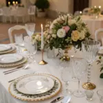 - White and Pink Bloom Pieces: Enhance your tablescape with delicate bloom pieces, offering subtle charm and elegance.