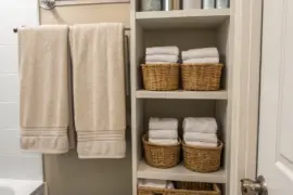 • Wicker Stash Baskets: Incorporate rustic appeal with wicker baskets. Ideal for towels and toiletries.