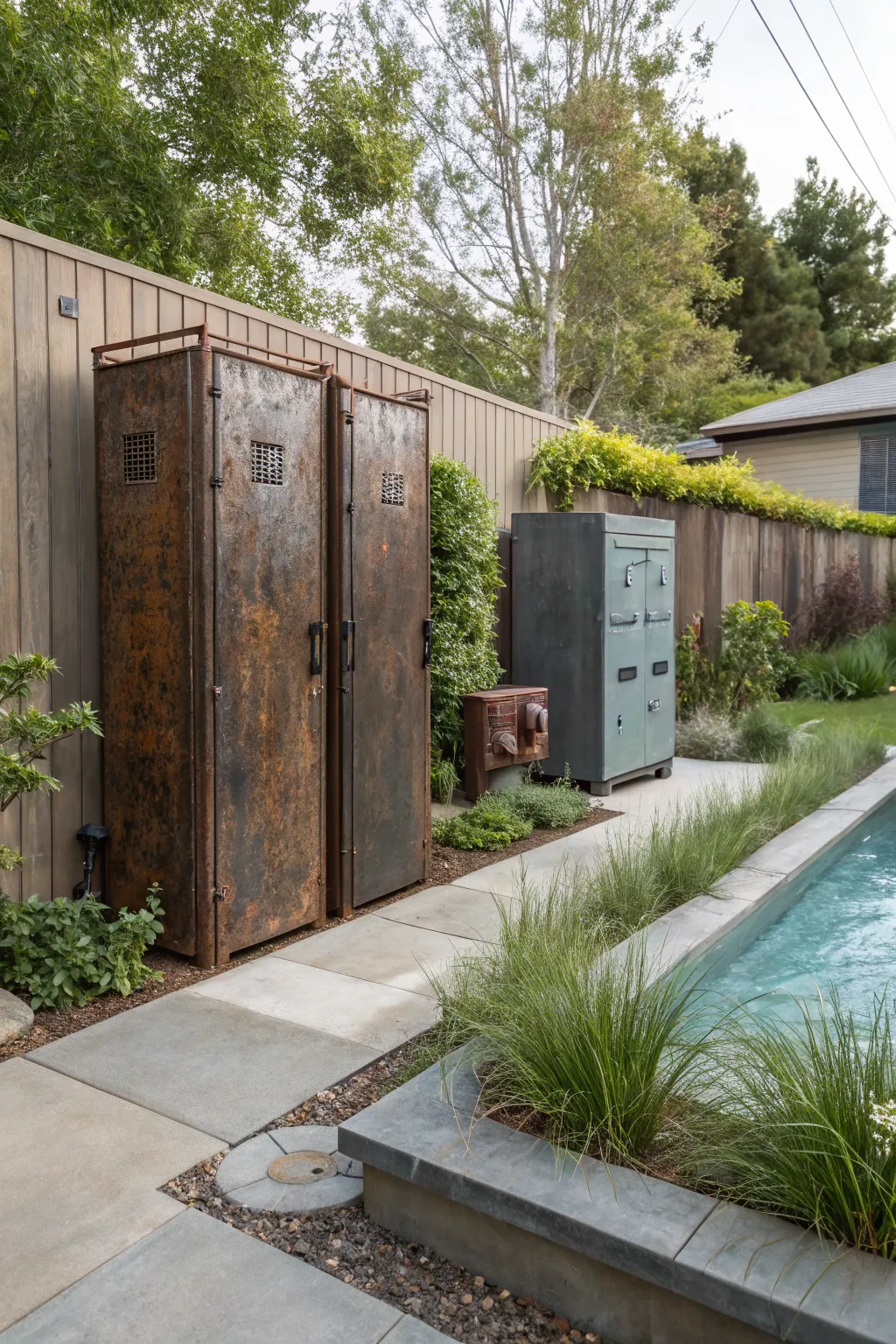 - Exterior Metal Storage Unit: Elevate your pool area with a chic exterior metal storage unit for a modern flair.