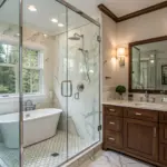 - Etched Neutral Rock Tiles: Add etched neutral rock tiles for an authentic and relaxing shower experience.
