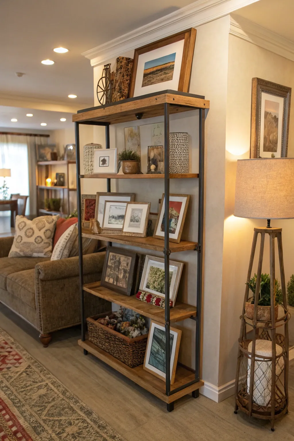 Utilize gallery ledges to arrange frames and ornamental objects. I enjoy changing the arrangement of my ledges to maintain a dynamic and fresh display.