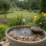 For a sophisticated and contemporary style, a stone basin fountain is excellent. Water rises across smooth stones, producing a calm, modern aesthetic.