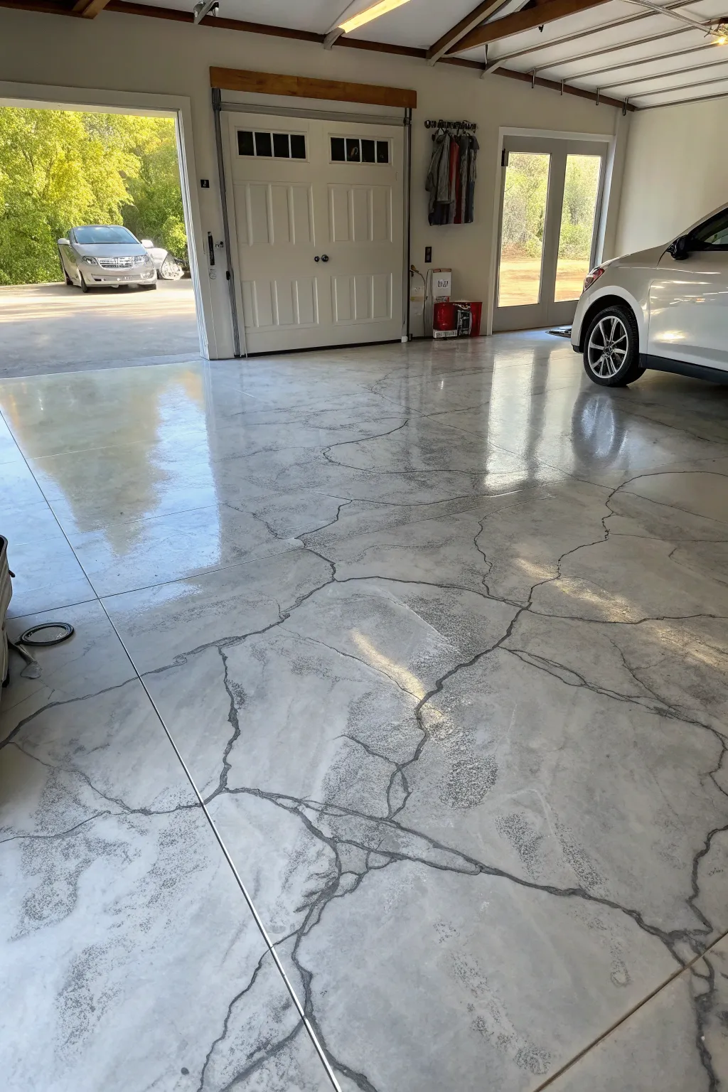 An uncluttered garage emphasizes the floor’s aesthetic and makes the area more welcoming. I’m always inclined to advise incorporating storage systems that manage clutter, allowing the floor’s charm to take the spotlight.