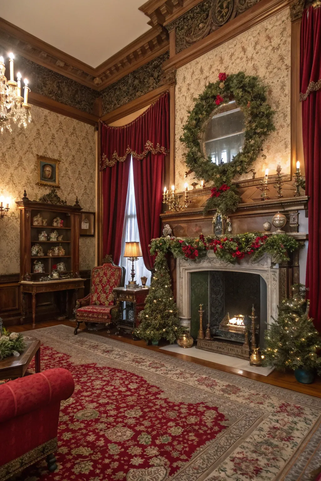 - Regency Crimson Drapes: Imbue elegance into your holiday decor with rich crimson drapes to evoke a Regency ambiance.