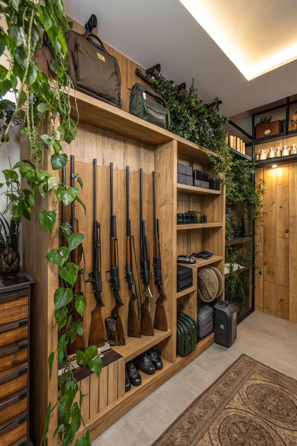 Adopting an industrial or tactical decor approach can enhance the overarching atmosphere of your armory. I find that these features imbue the space with a robust and stylish appeal.