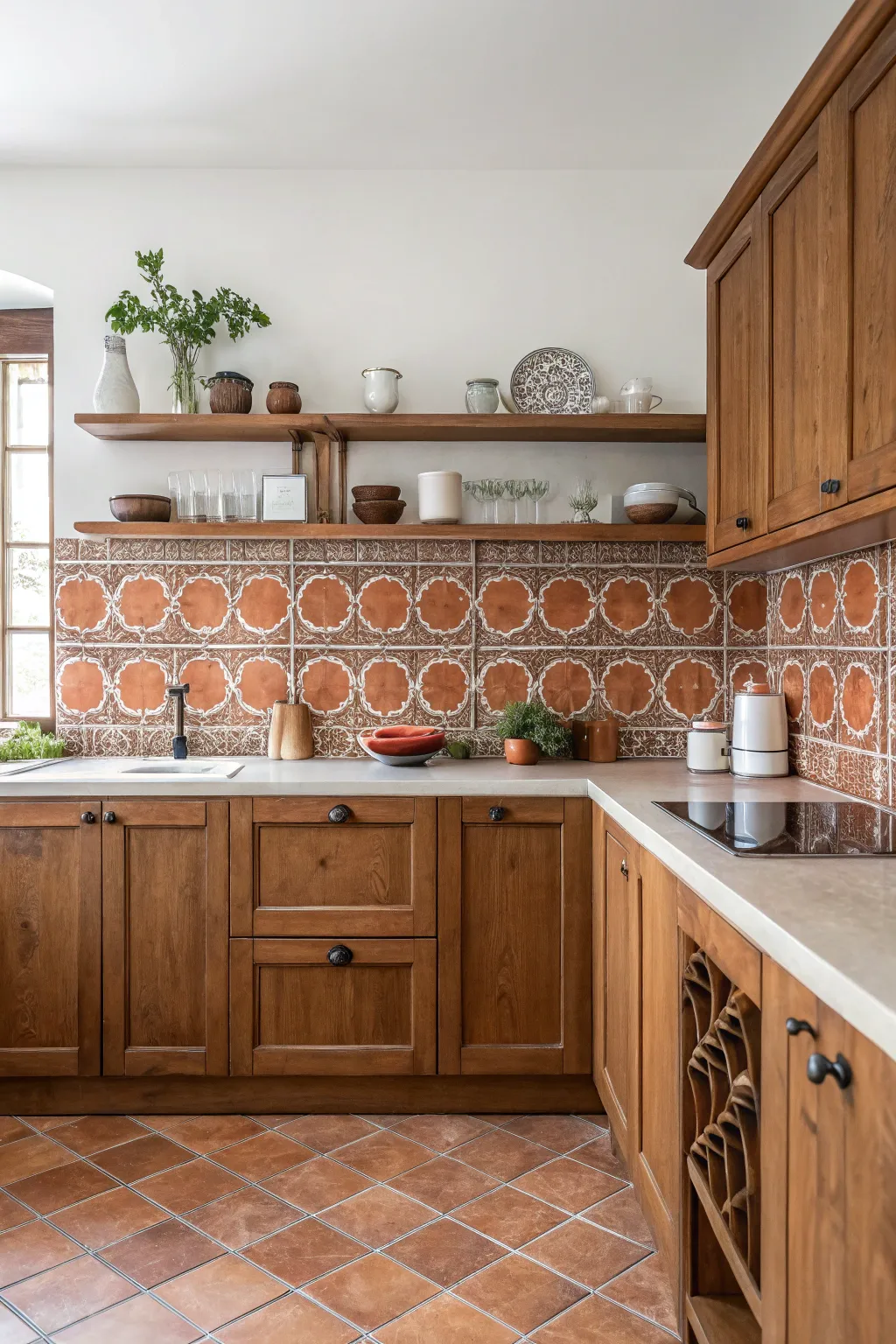 Terracotta tiles provide a warm, earthy feel that’s ideal for establishing a cozy kitchen environment. They pair beautifully with wooden elements.