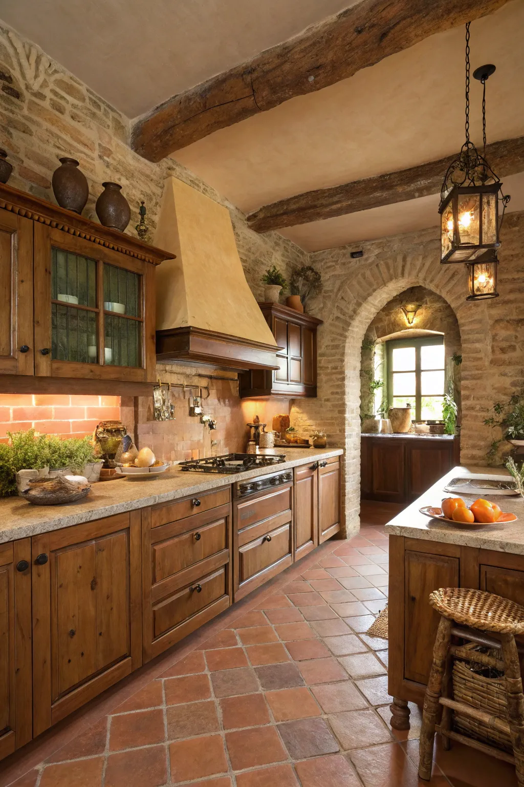 - Terracotta Floor Finish: Redo your kitchen floor with warm terracotta finishes, echoing the appeal of the Italian countryside.