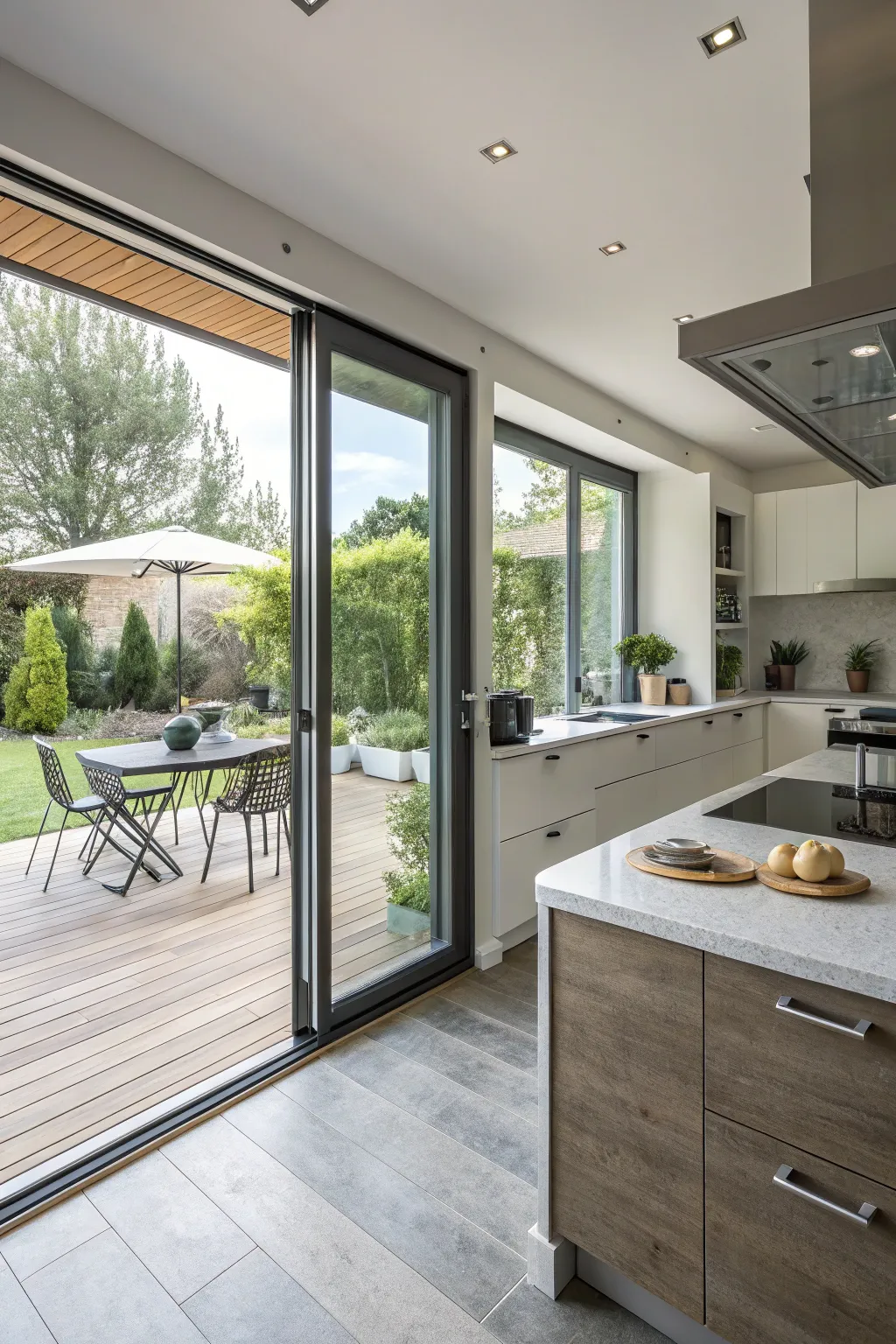 Blurring the distinction between indoor and outdoor areas adds a refreshing dimension to your kitchen. I appreciate using sliding doors to enhance this smooth transition. Bring the outside in!