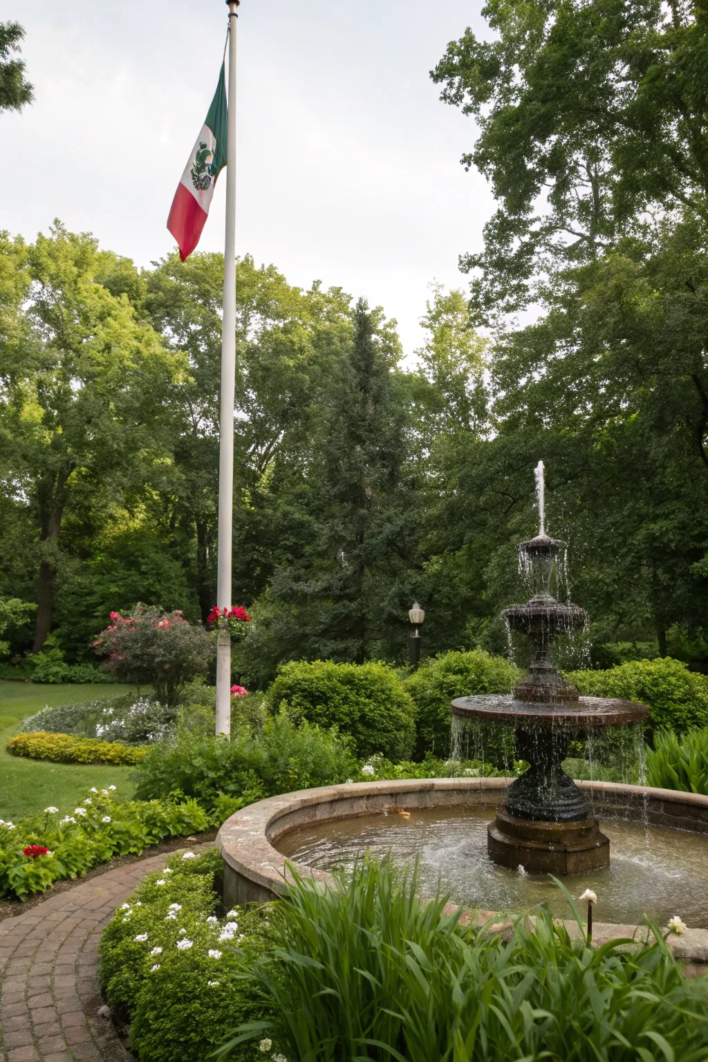 Introduce a water feature close to your flagpole for a calming atmosphere. A small fountain or pond can bring tranquility and charm.