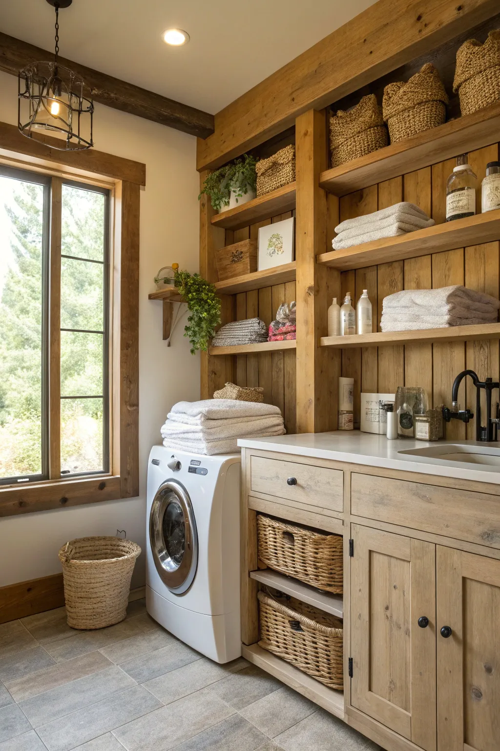 • Wood Block Surface: Introduce a cozy, organic aspect while making a solid area for laundry chores.