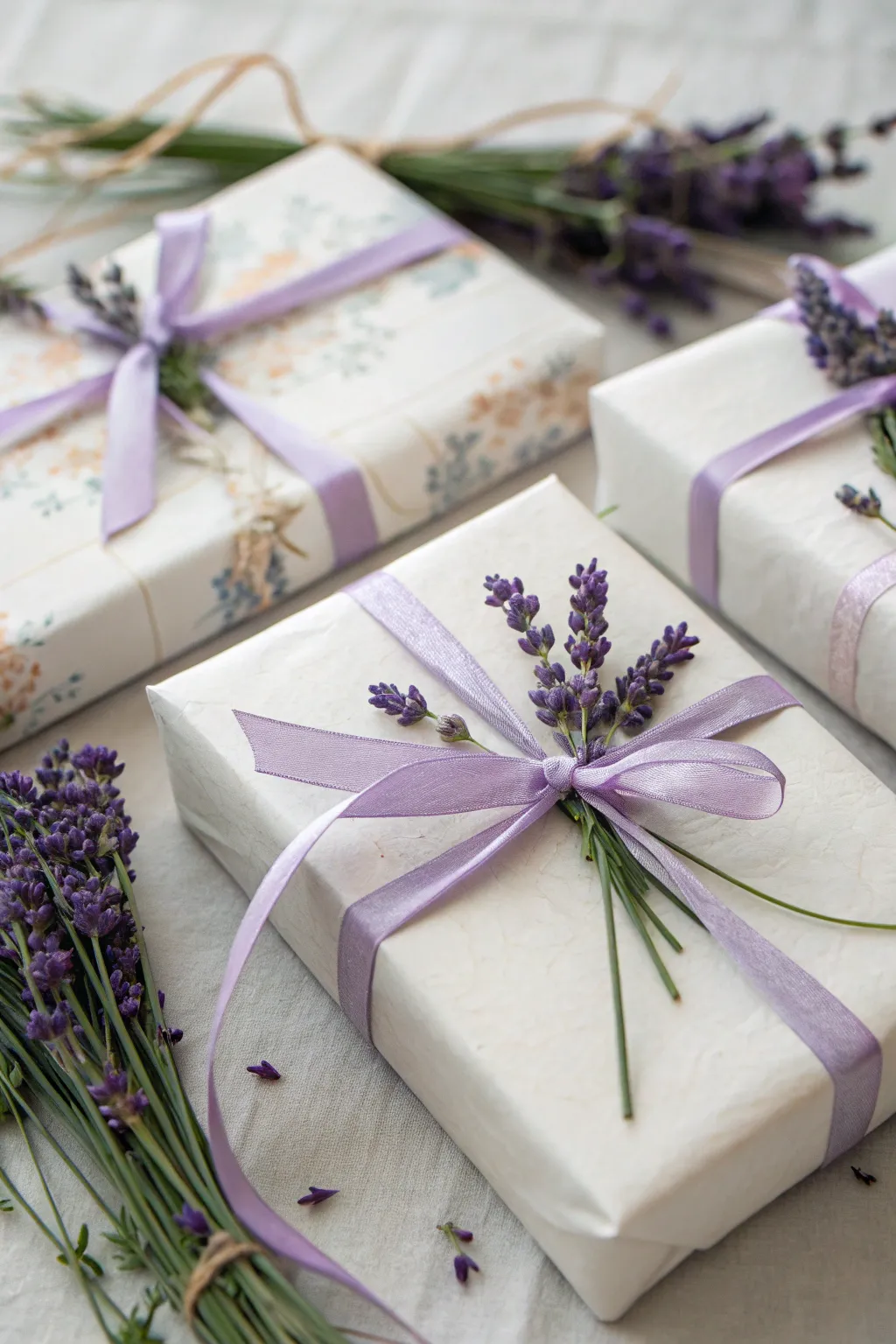 - Botanical Present Wrap Paper: Accentuate your lavender decor using charming botanical present wrap paper for a cohesive appearance.