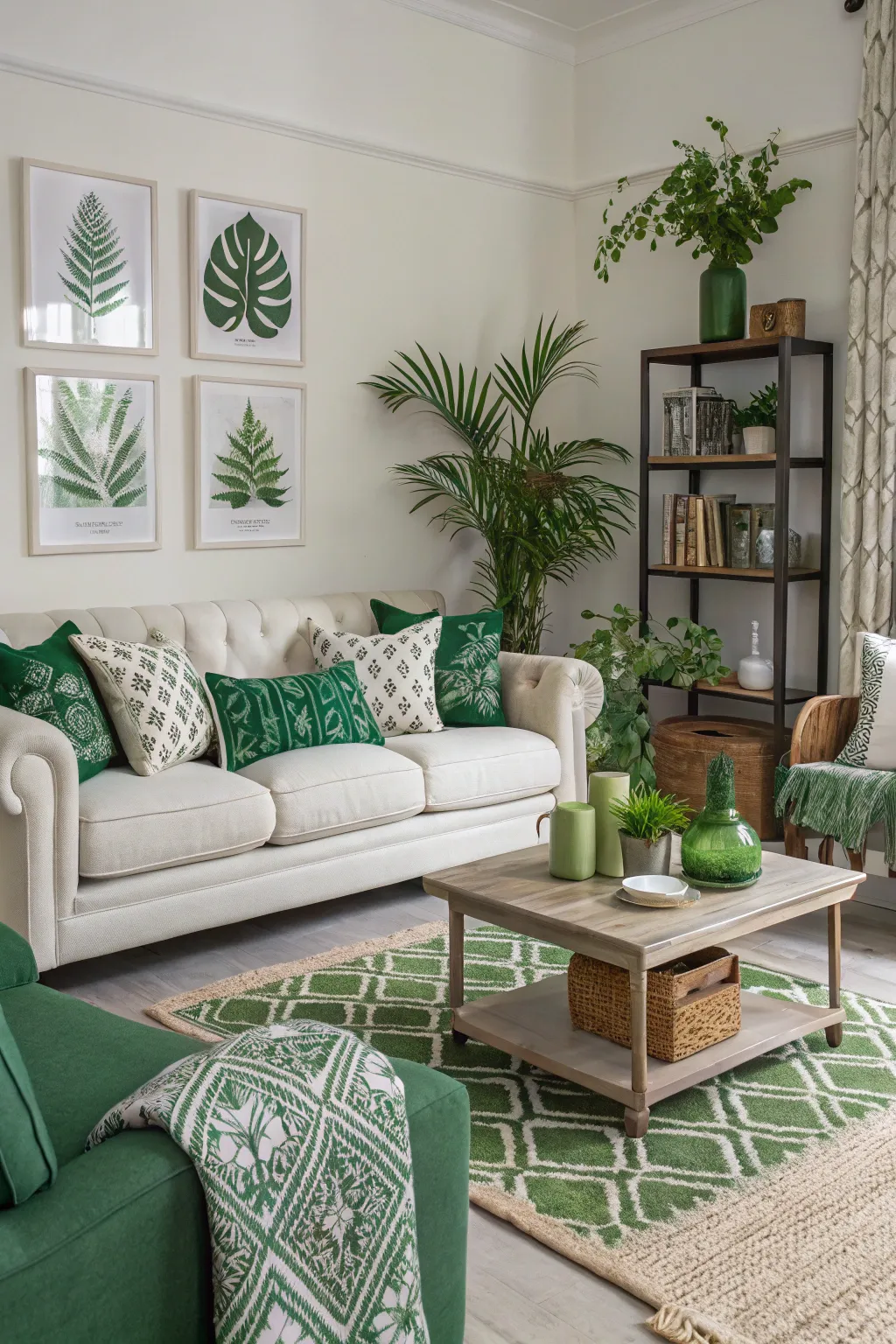 Geometric designs in green accents, like rugs or cushions, can add visual interest and modern flair. I enjoy experimenting with different shapes to keep the design lively.