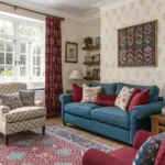 • Antique-Style Azure Plush Seating: Add luxury to the living room featuring plush azure plush seating, uniting comfort and style.