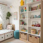 Establish an engaging children’s zone with units stocked with toys and books. This configuration encourages play and learning while maintaining your living space arranged.
