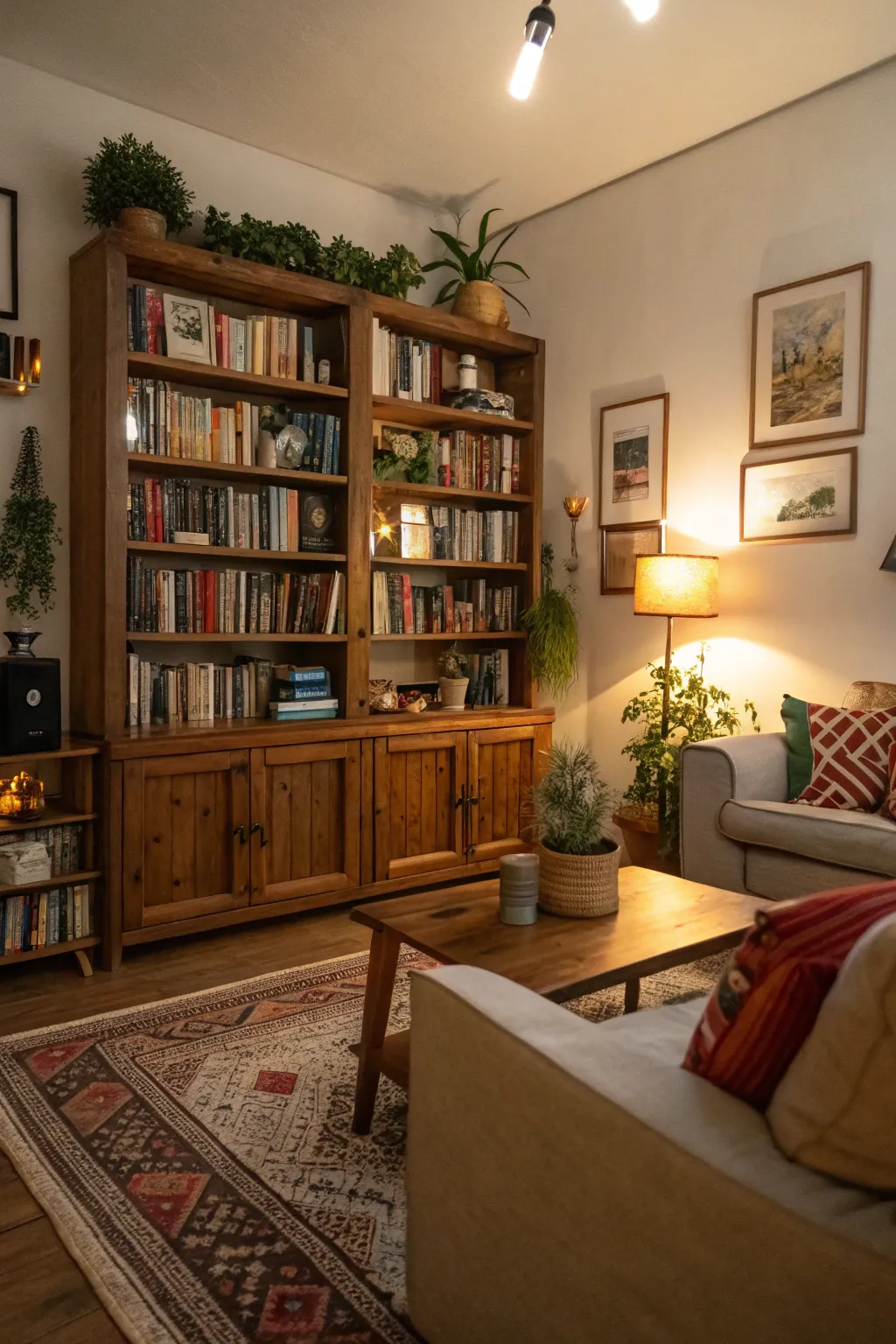 • Time-worn Design Lanterns: Illuminate your shelves with time-worn lanterns, making a warm and inviting ambiance.