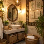 Border your mirrors with macrame for an eye-catching and unique piece. My restroom mirror has evolved into a fashionable focal point, introducing a dash of boho panache.