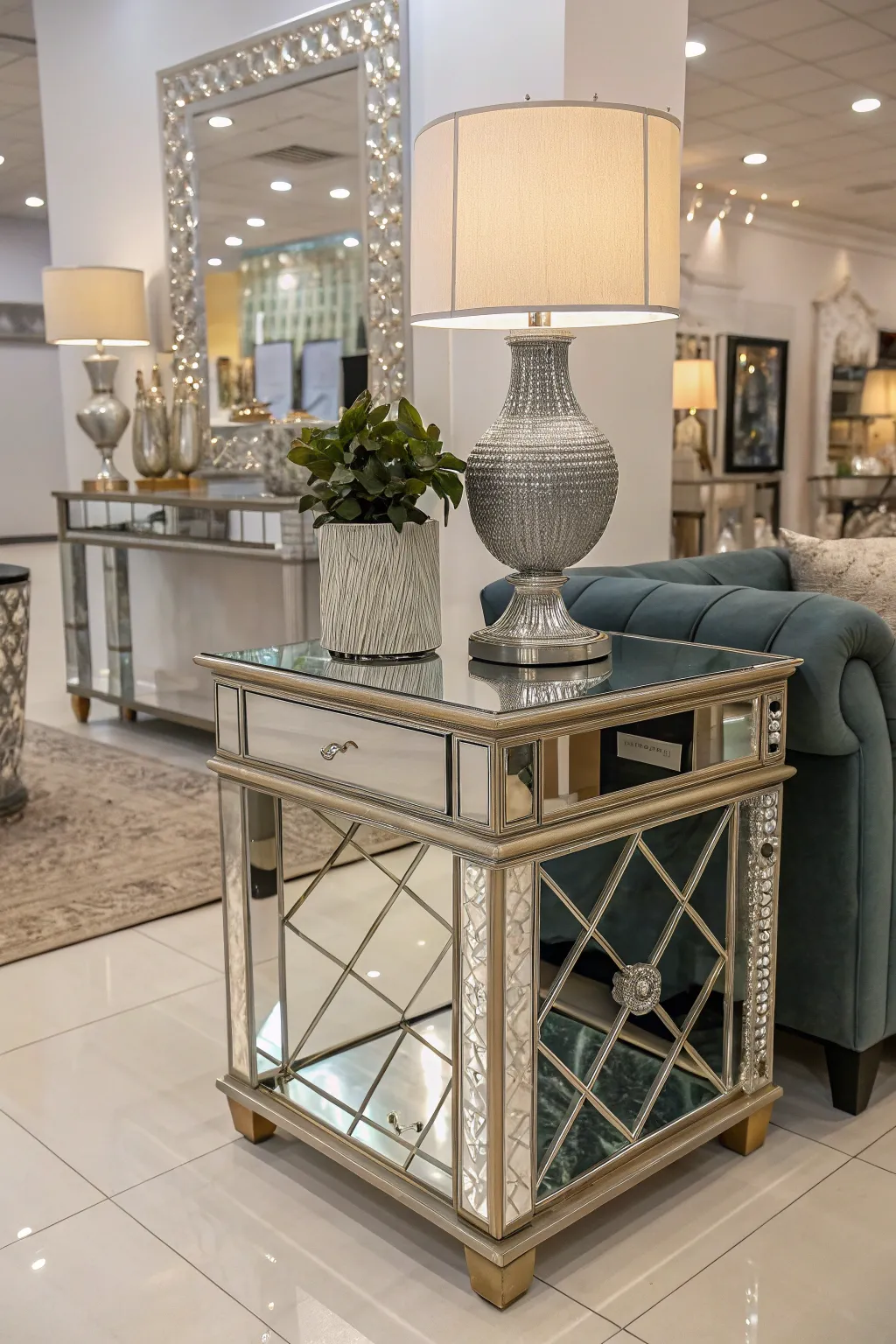 Incorporate mirrored furniture for an added touch of glamour. I find that a mirrored side table in my studio beautifully reflects light and imparts a sophisticated edge to the space.
