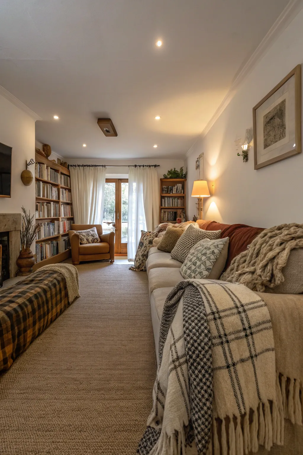 Positioning furnishings across the breadth as opposed to along the length can visually broaden the area. This approach has aided me in establishing a more symmetrical configuration that feels less akin to a passageway.