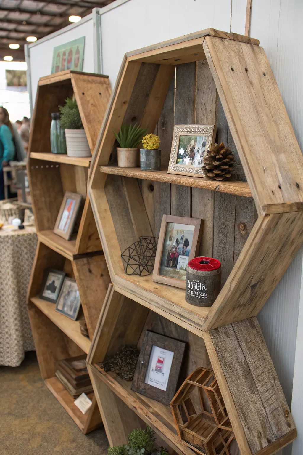 - Geometric Hexagon Timber Shelving: Fashion an arresting wall showcase with hexagon timber shelving; suited for books and plants.